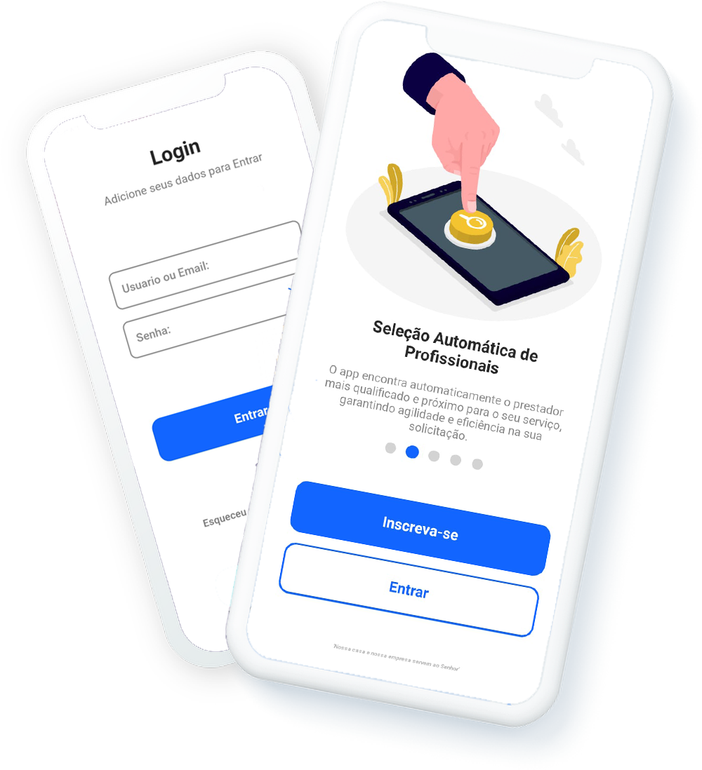 Contrate os melhores profissionais com total segurança, acompanhe cada etapa do serviço em tempo real e resolva tudo diretamente pelo app. Simplifique sua vida com um serviço rápido, confiável e fácil de usar.